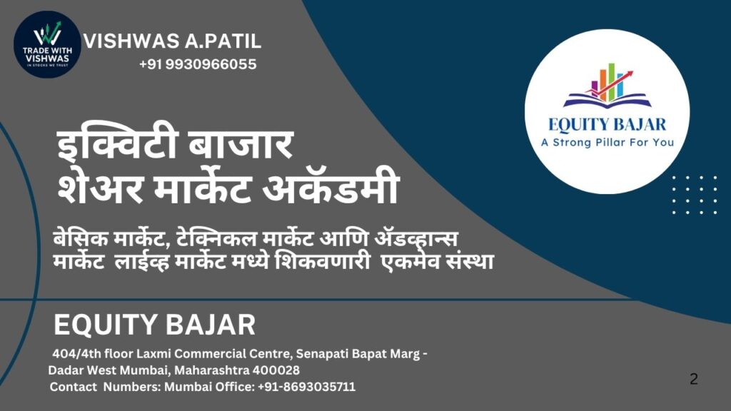“Equity Bajar” हा Share Market शिकण्यासाठीचा एक खास वर्ग आहे. इथे तुम्हाला Basics पासून Advance Level पर्यंत Trading, Investment आणि Market Analysis शिकायला मिळेल. हा class फक्त शैक्षणिक उद्देशाने आहे, आम्ही SEBI registered नाही.